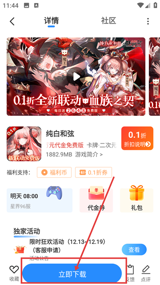 4、进入游戏详情页后,点击底部【立即下载】按钮,就能开始下载这款游戏,准备体验啦。