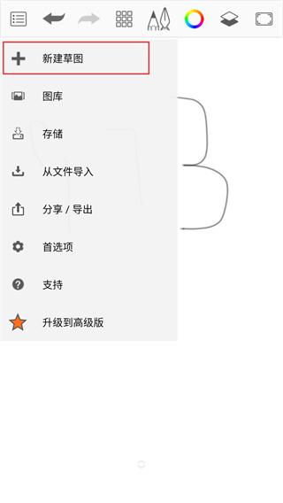 1、在绘图界面点击左上角的菜单按钮,就能展开功能选项列表,找到新建或导入相关的操作入口啦。