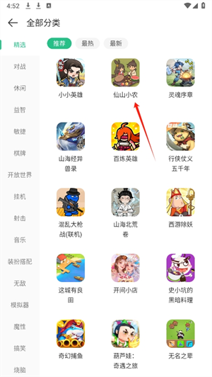 1、每一个游戏都进行了详细分类,按照我们兴趣,在不同分类里进行查找,支持玩家去操作。