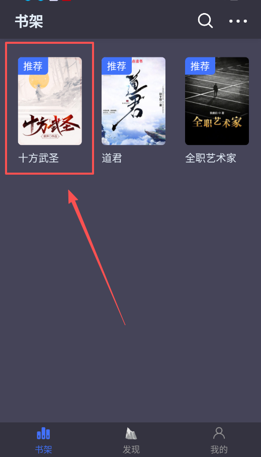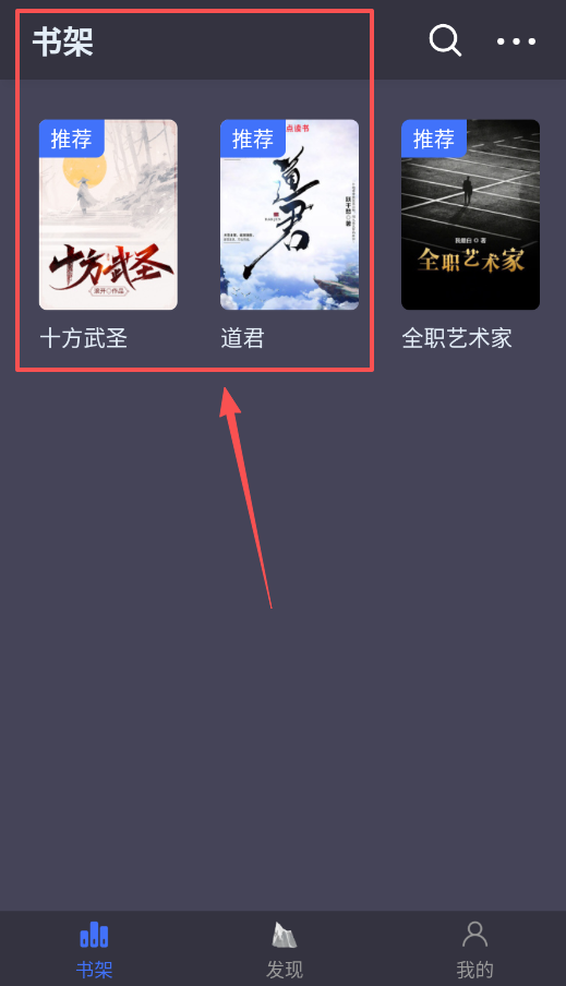 1、从底部导航进入“书架”,这里存放着你收藏的全职艺术家、道君等作品,直接点击就能阅读。