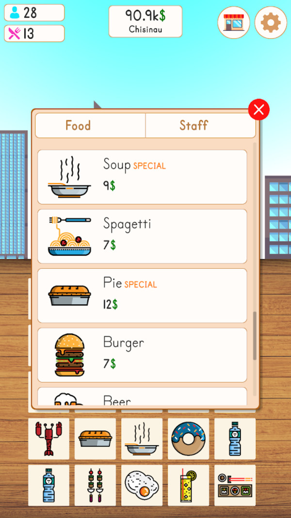 《快餐馆大亨》在游戏里会有非常多的食材,玩家能够去里面制作出更多美食,将顾客的口味给满足。游戏的整体玩法还是很轻松,你会很快上手,将里面的设施都给更新一下,这样能让你更轻松的完成。不同食物会有不同价格,你要自己去使用的。