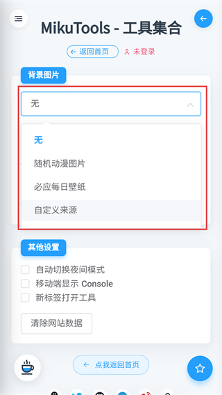 3、在设置页的背景图片下拉框,能选【随机动漫图片】等选项,自定义页面背景样式啦。