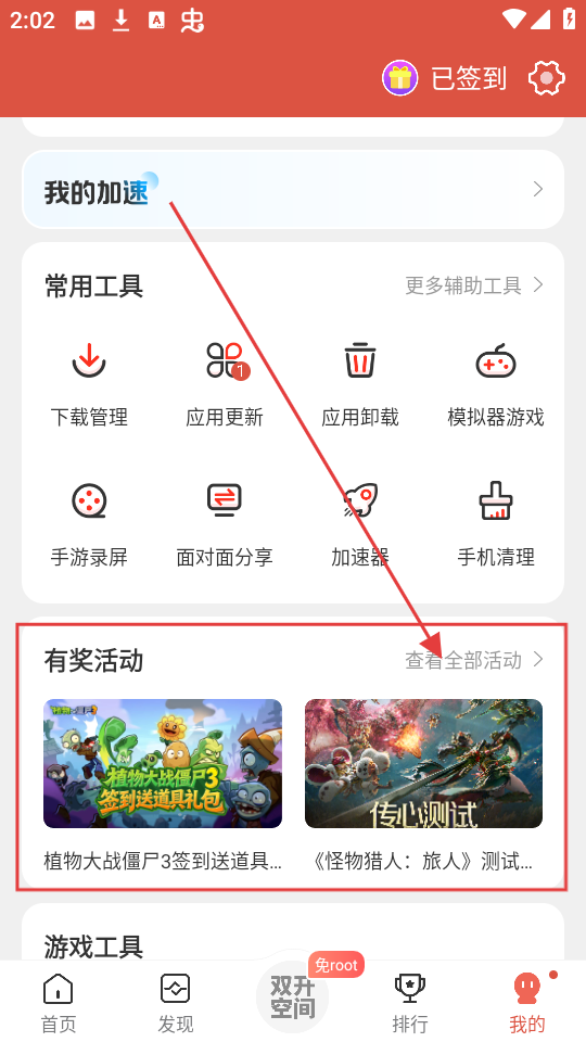 2、进入“我的”页面后,找到【有奖活动】区域,点击“查看全部活动”,就能看到所有有奖活动啦。