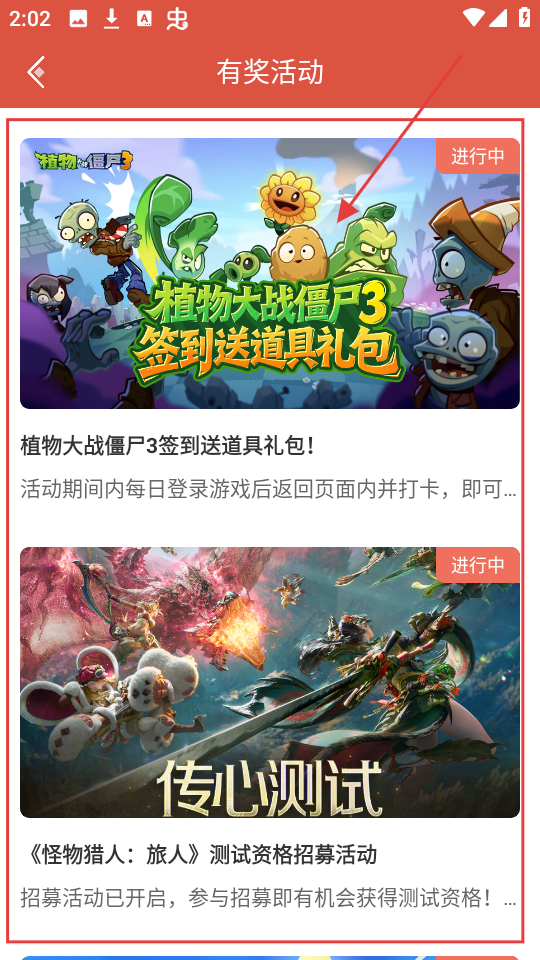 3、进入有奖活动页面后,能看到各类活动,比如“植物大战僵尸3签到送道具礼包”等,选择想参与的活动点击进入哦。