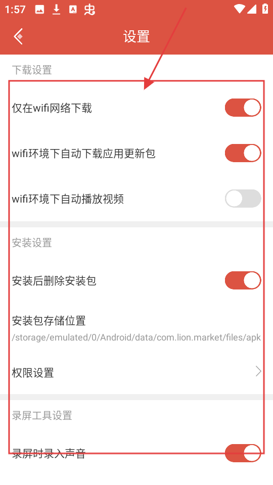 3、进入设置页面后,能看到下载设置、安装设置等选项,可根据需求调整各项设置,让软件更贴合使用习惯哦。