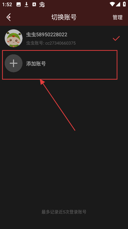 3、进入切换账号页面后,点击【添加账号】选项,就能进入登录页面,去输入新账号信息啦。