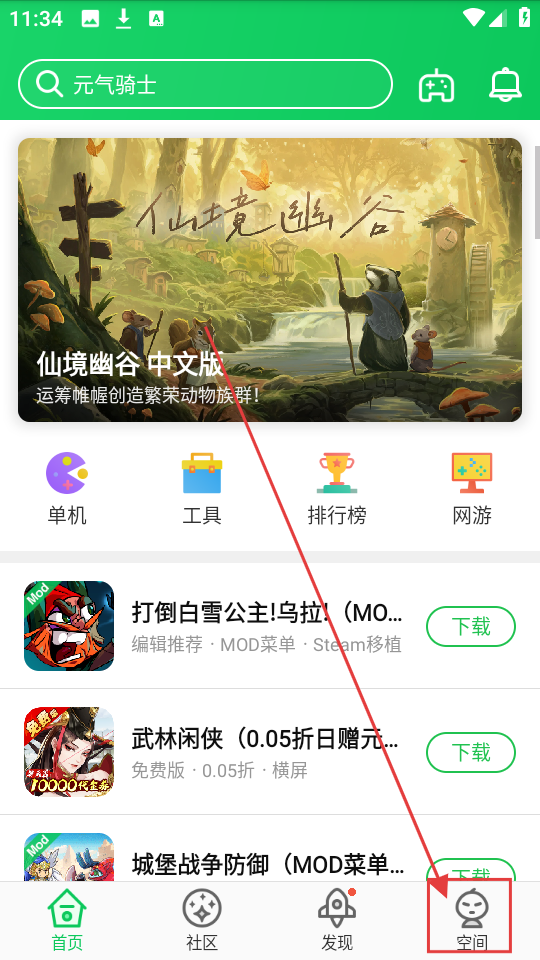 1、在软件首页底部,有【空间】按钮,点击它就能进入个人空间页面,方便管理个人账号相关功能哦。