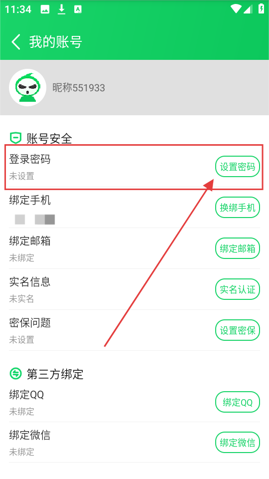 3、在账号安全设置界面,有【登录密码】选项,点击【设置密码】按钮可开始设置登录密码哦。