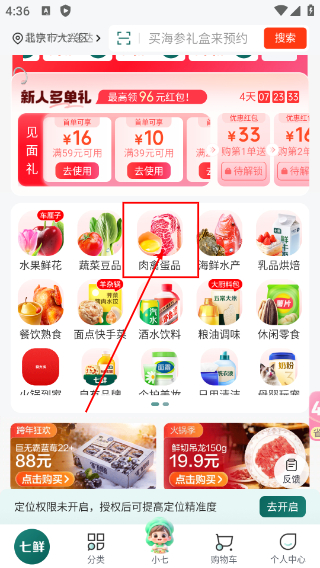 1、在应用首页的分类区域找到【肉禽蛋奶】选项并点击,进入对应分类的商品列表页面,浏览该品类商品。