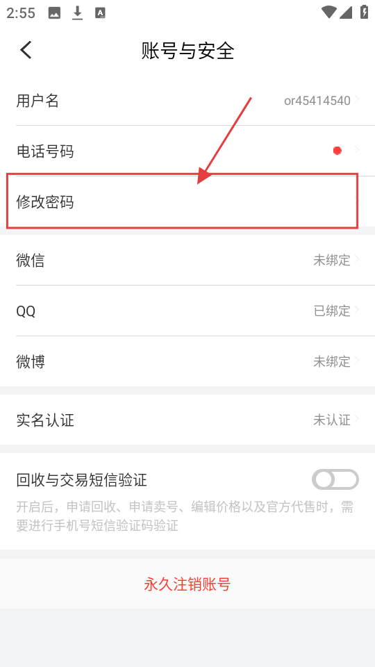 3、在账号与安全页面,点击【修改密码】,可进入修改密码页面啦。