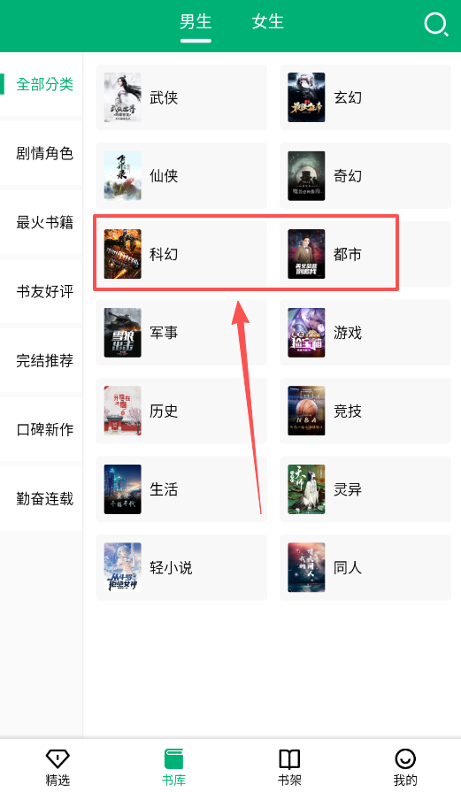 2、如果你有明确的阅读偏好,比如想看“科幻”或“都市”类,就去“全部分类”里找。