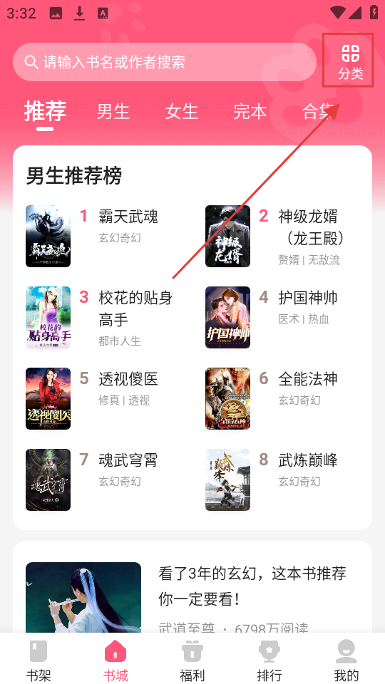 1、想找分类小说,就点击右上角【分类】按钮,超容易找到喜欢的类型呢。