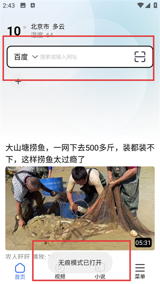 3、开启【无痕浏览】后界面会出现【无痕模式已打开】提示,此时浏览内容不会留下记录哦。