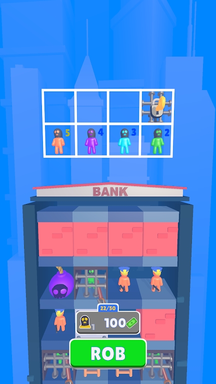 《合并盗贼》这款游戏里玩家要去用盗贼来完成更多任务,而且你是能将它们进行合并,来让你更好的完成挑战。玩家会在银行里挑战,里面都是有很多机关和看守,玩家要想完成任务是不简单的。不同关卡的挑战难度也会不同,对玩家的操作还是很有考验。