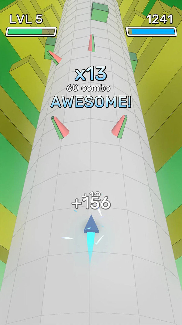 《几何前冲》是一款趣味的冲刺闯关题材的游戏,在这里玩家需要控制着自己的几何图形去进行一系列刺激的冒险,在这里要注意圆柱道路上面那些凸起的障碍,不要让自己的几何图形撞上他们,随着游戏的推进难度会越来越高的,对此我们的玩家一定要做好准备,相信你可以完成里面的挑战的。