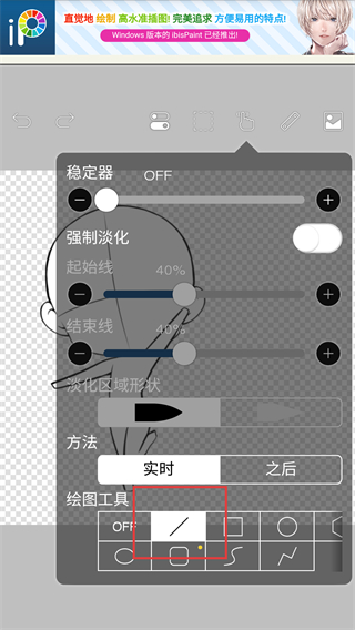2、打开功能面板后,在绘图工具区域选择需要的工具样式,就能切换对应的绘制辅助工具哦。