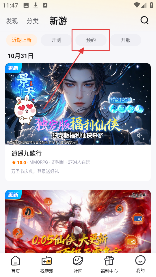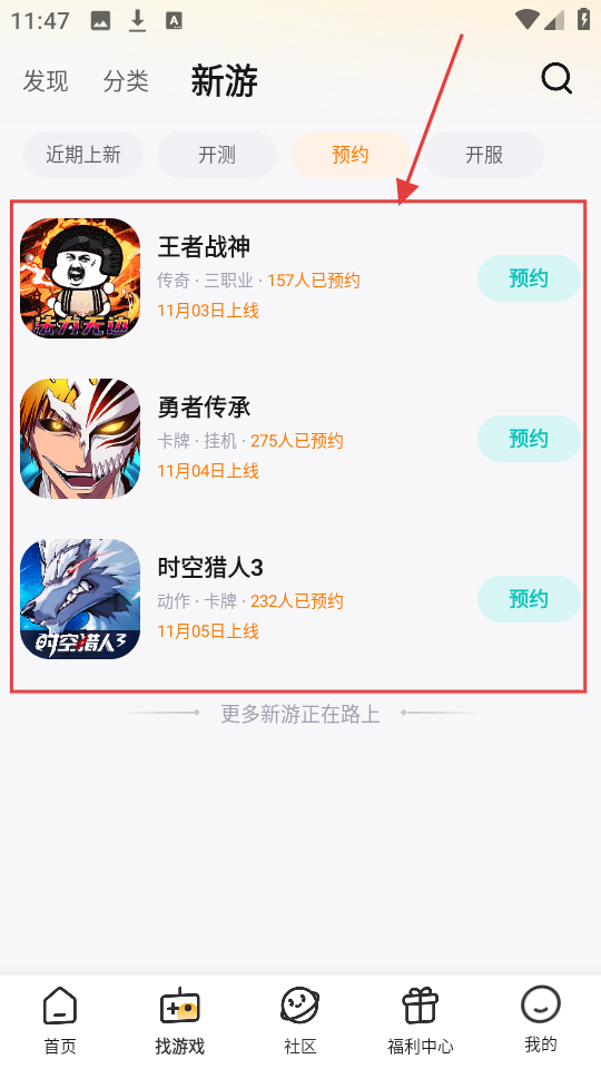 1、在新游页面点击【预约】,就能看到可预约的新游戏列表,快去看看吧。