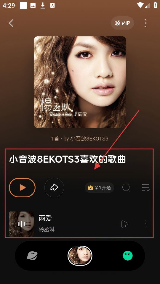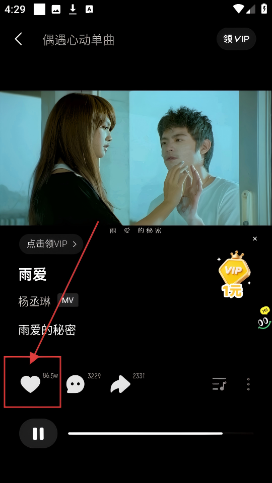 2、进入【雨爱】播放页后,找到左侧心形图标,点击它,就能把这首歌加入喜欢啦。