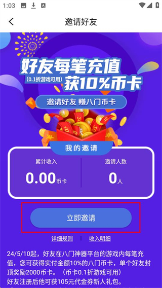 3、在邀请好友界面点击【立即邀请】,就能进入分享平台选择界面哦。