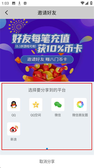 4、在分享平台选择界面选择要分享的平台,比如【微信】,就能邀请好友参与活动啦。