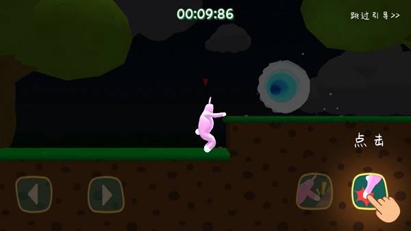 1、初入游戏的玩家,首先迎来的便是新手引导。在图中所示的按键操作中,按住左侧的移动按钮,即可控制兔子人前进或后退。