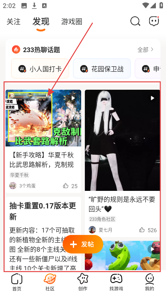 2、在社区【发现】页,能看到各类游戏帖子,像【华夏千秋-比武思路解析】这类攻略帖很值得看看哦。