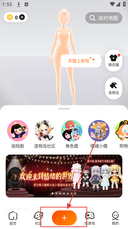 1、我们在软件主页面,点击底部的“+”按钮,就可以展开功能选项,准备进行创作相关操作啦。