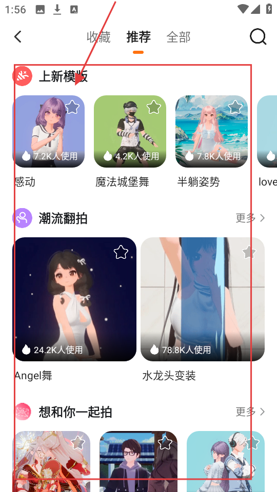 3、进入后,我们可以看到“上新模版”“潮流翻拍”等板块,里面有各种短剧模板,我们可以挑选喜欢的模板来拍摄短剧。