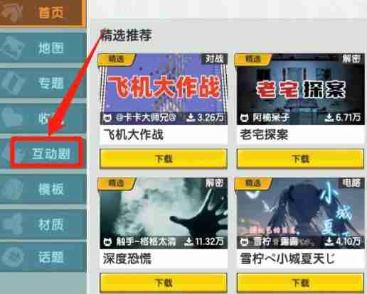 2、进入活动页面,在左侧栏目中找到【互动剧】。