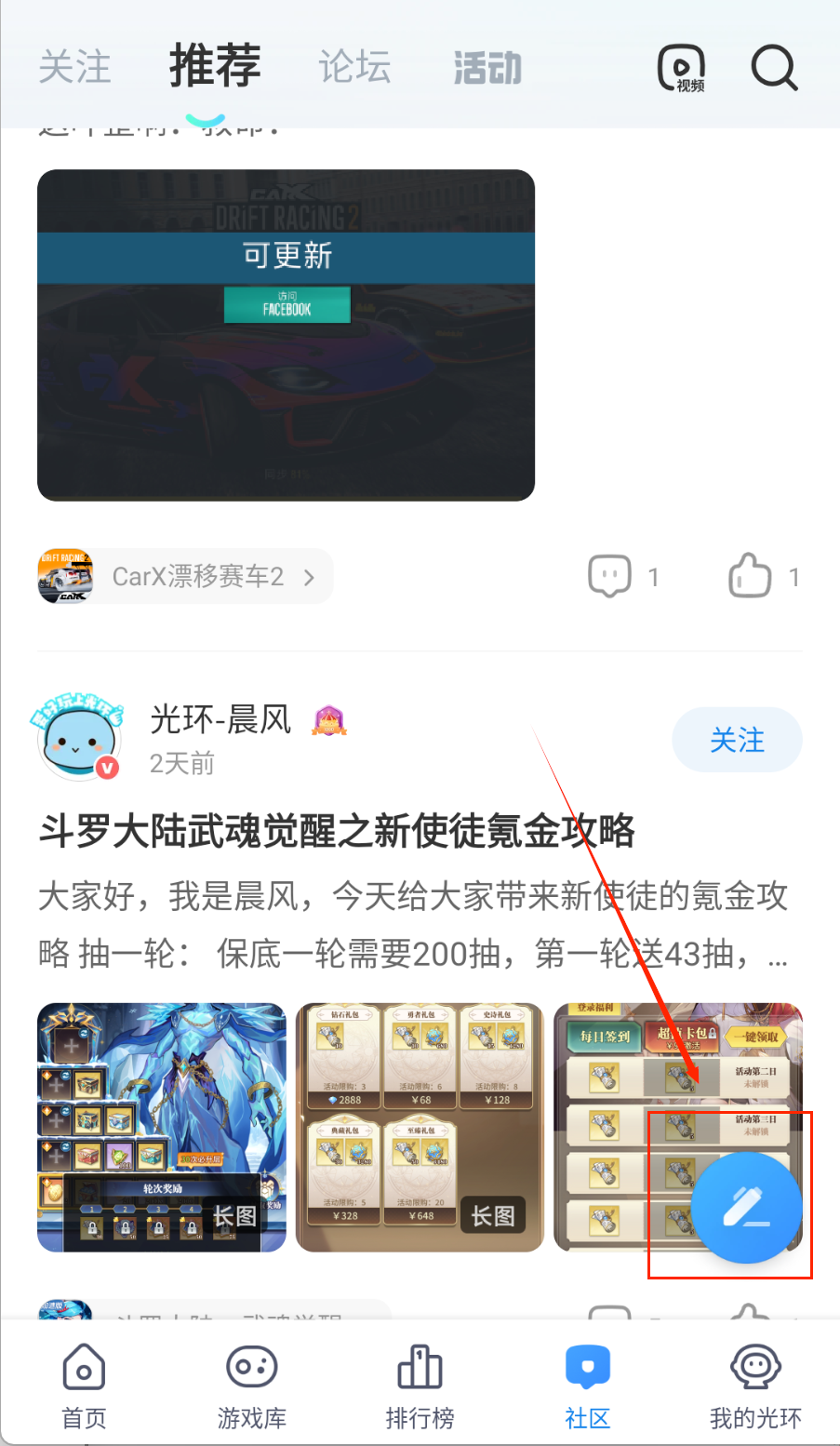 1、在社区页面可以浏览其他玩家的帖子和分享,关注感兴趣的用户获取最新动态,点赞评论互动交流游戏心得。