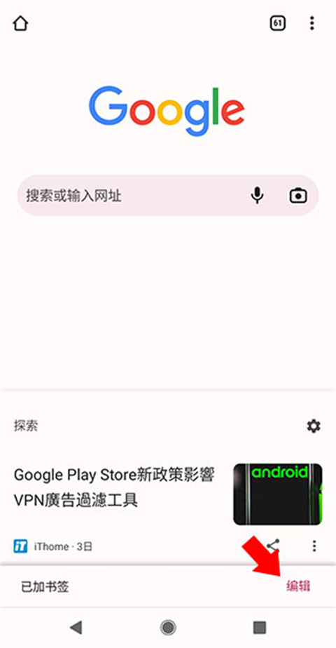 3、就可以将该网站添加到书签了,点击提示参考右侧的“编辑”