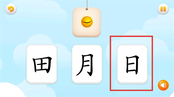 4、在汉字选择页选正确的汉字,比如对应太阳形象的【日】字,点它就能完成这轮识字任务啦。