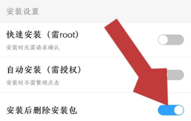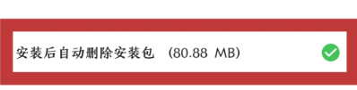 5、点击安装后删除安装包后方的灰色开关按钮,待按钮变为蓝色,安装后删除安装包的功能就打开了。