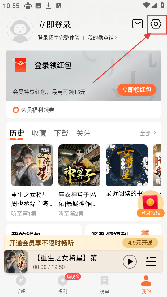 2、进入个人中心后,找到右上角的设置图标,点击它就能进入设置页面,进行各项设置咯。