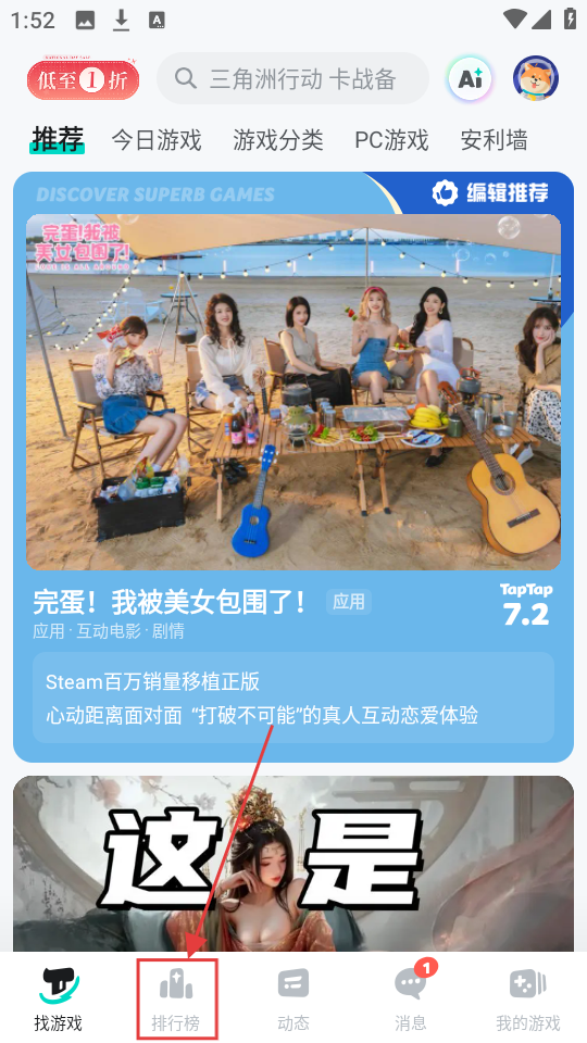 1、在软件主界面,点击底部【排行榜】,就能进入排行榜页面,查看各类游戏榜单啦。