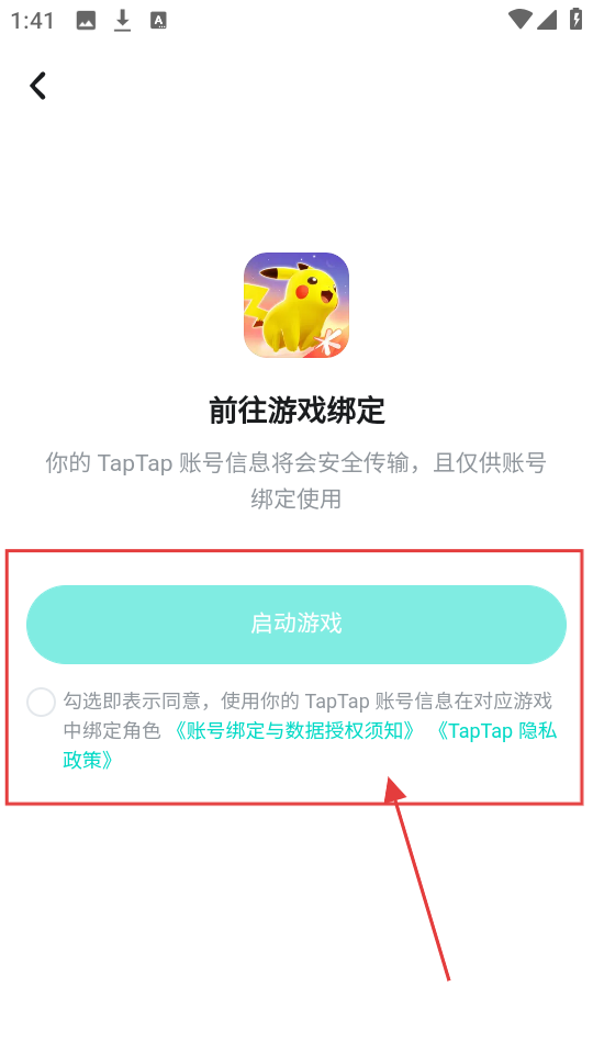 4、选择要绑定的游戏后,进入前往游戏绑定页面,勾选同意相关须知,点击【启动游戏】,就能完成账号绑定啦。