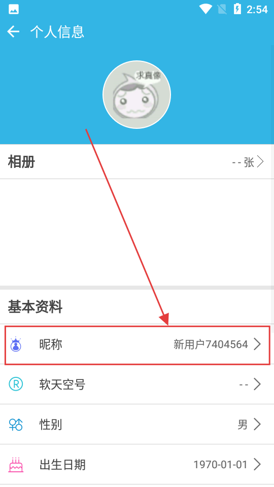 2、在个人信息界面点击【昵称】,就能进入修改昵称界面,开始修改昵称啦。