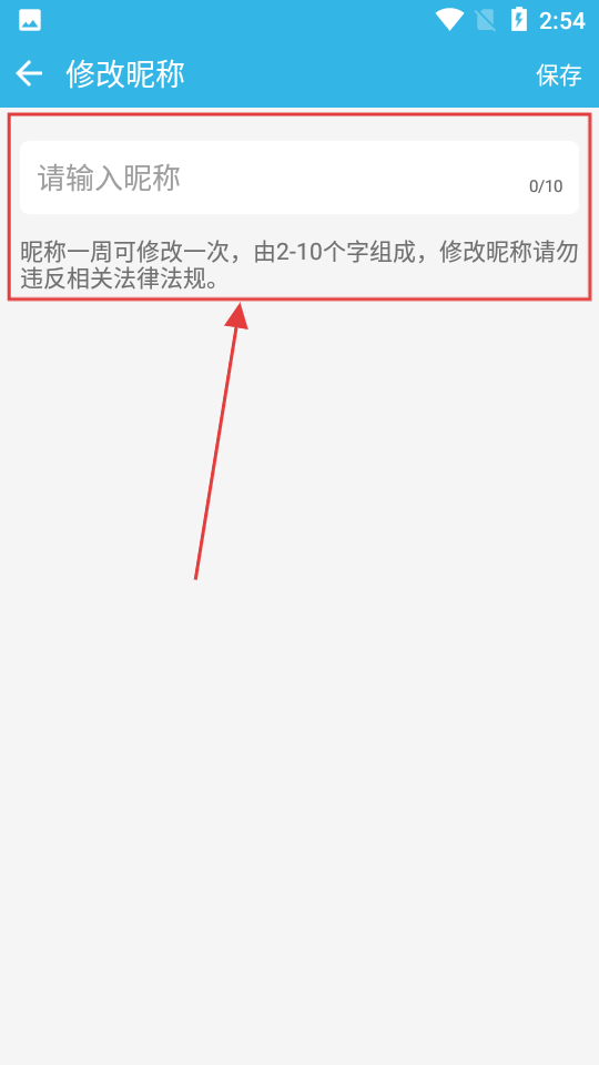 3、在修改昵称界面输入新昵称,注意昵称规则,输入后点击保存即可提交修改哦。