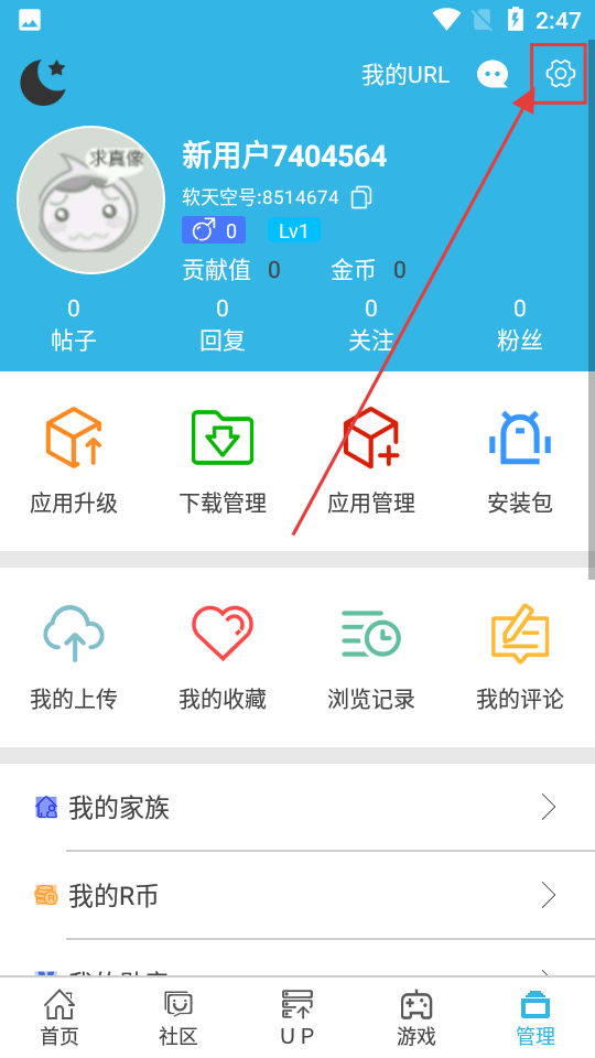 2、在个人管理界面点击设置图标,就能进入设置界面,调整各类功能设置啦。