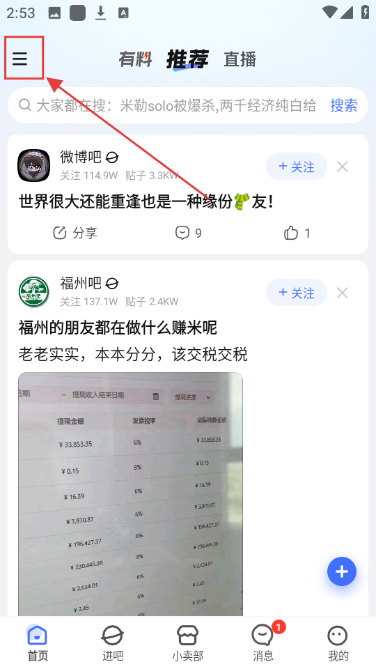 1、先点击界面左上角【三】形状的按钮,打开侧边栏,这可是进入后续设置的第一步哟。