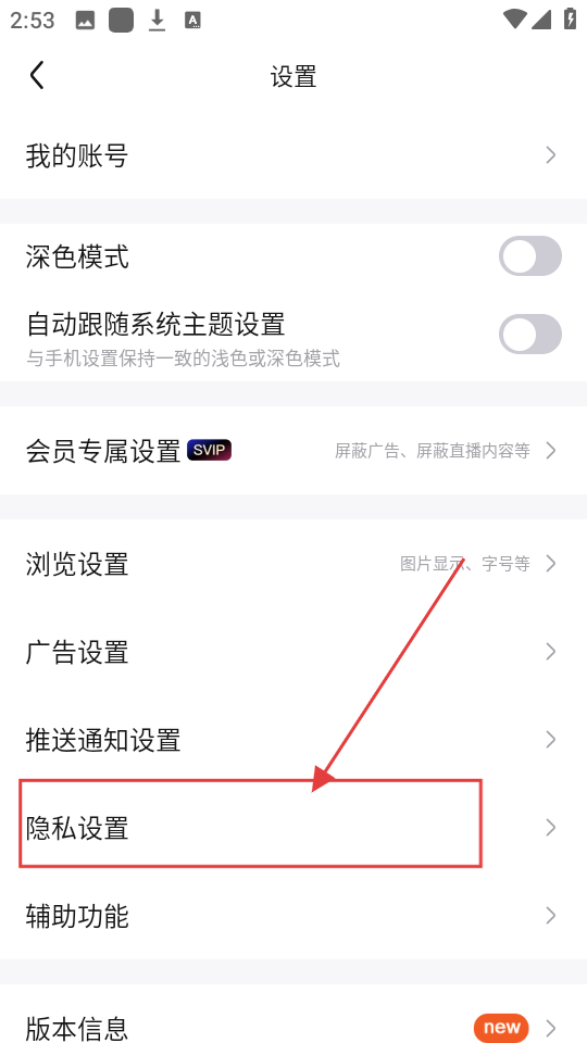 3、进入设置页面后,找到并点击【隐私设置】选项,这里能调整很多隐私相关的内容呢。