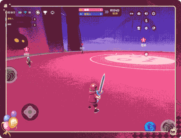 在痛击飞球-2v2v2团队战中,肠肠可以选择单人进入和匹配的队友组队参与团队战,也可以选择和一位好肠友组队进入!在痛击飞球团队战中,将根据肠肠们的队伍显示不同颜色的标记!