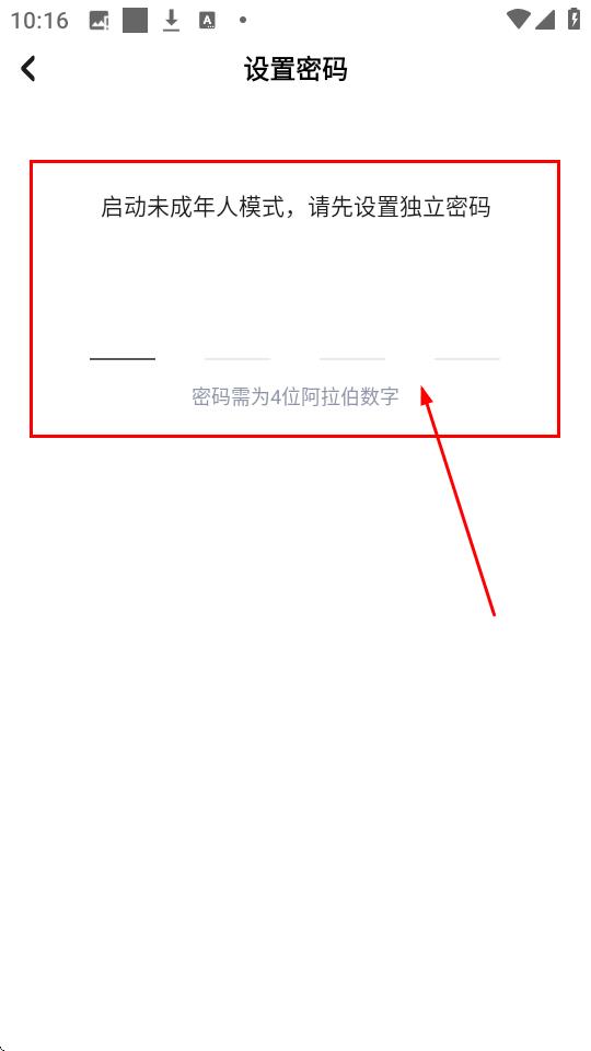 4、设置4位阿拉伯数字的独立密码后,就能成功开启未成年人模式,为未成年人营造健康使用环境啦。