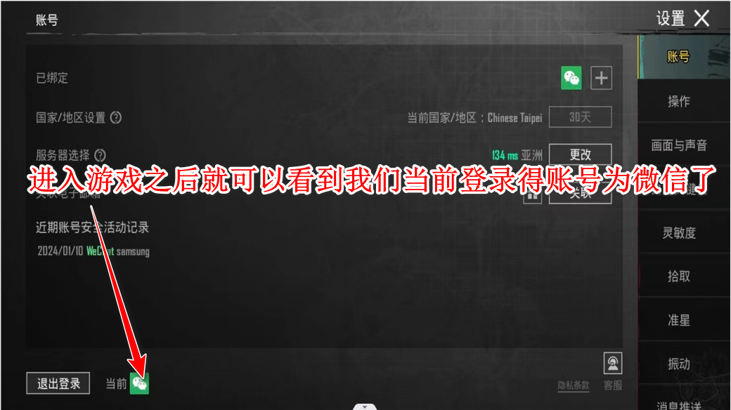 3.进入游戏之后就可以看到我们当前登录得账号为微信了