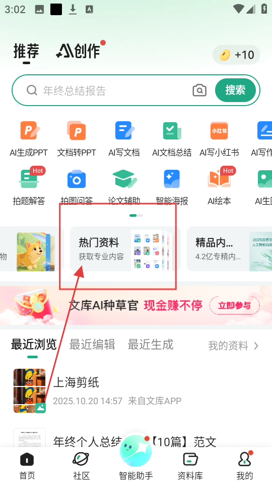 1、在首页,看到【热门资料】区域,点击它,就能进入知识库页面,查看各类资料啦。