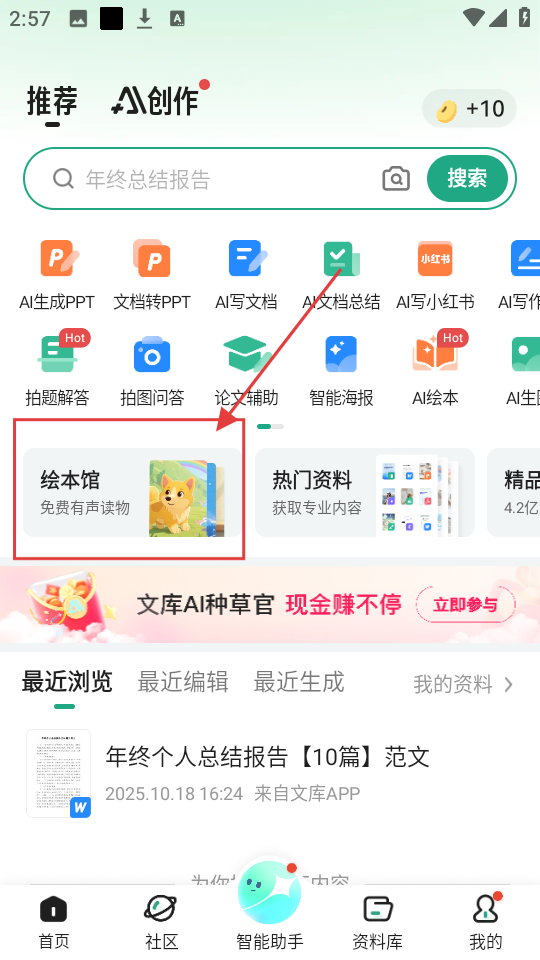 1、我们进入软件首页,若想进入绘本馆,点击【绘本馆】,就能进入优质绘本馆页面啦。