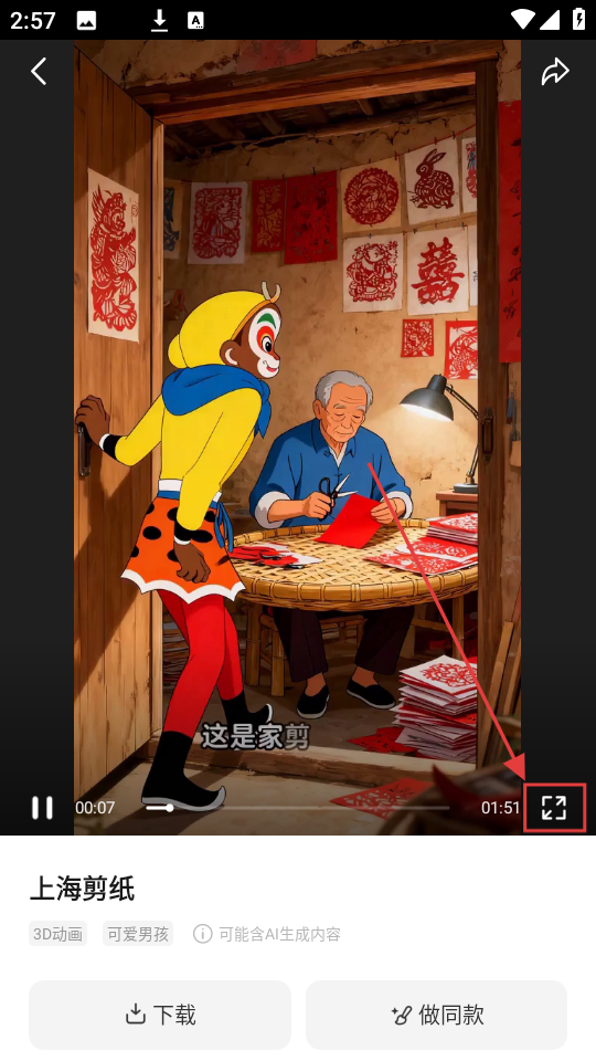 3、进入绘本视频播放页面后,若想全屏观看,点击全屏图标,就能切换到全屏模式,更好地观看视频呢。