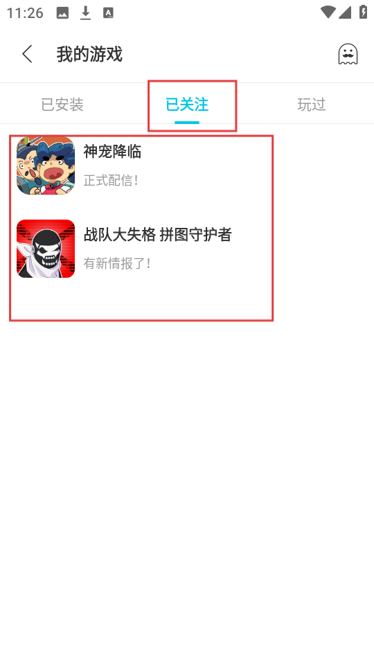 4、在我的游戏页面的【已关注】列表里,能看到《神宠降临》等关注的游戏,不会错过新消息啦。