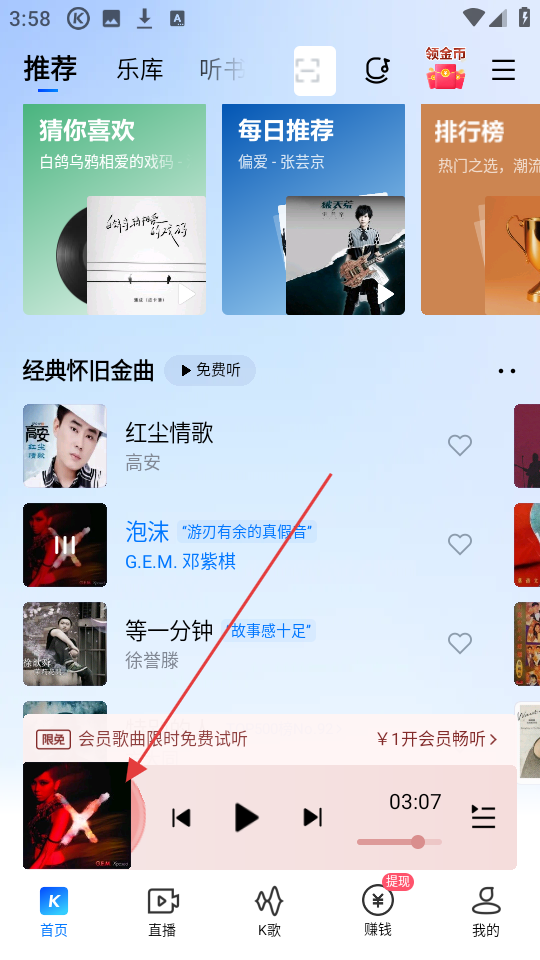 酷狗音乐开启免费听歌模式教程