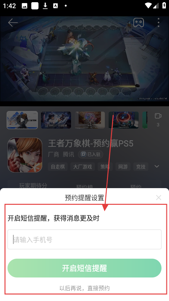 2、进入游戏详情页后,点击【预约领礼包】,可触发预约提醒设置弹窗,准备设置提醒啦。